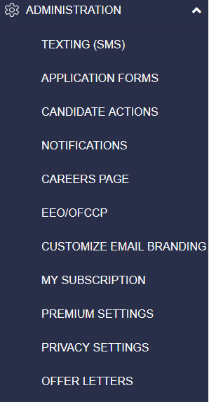 Administration controls the Hiring settings for the following configurations.