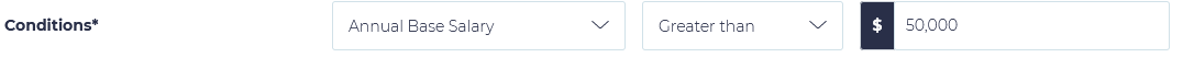 Depending on which condition you approve, a different set of fields will appear. For instance, if you choose annual base salary, you will see fields that look something like this: