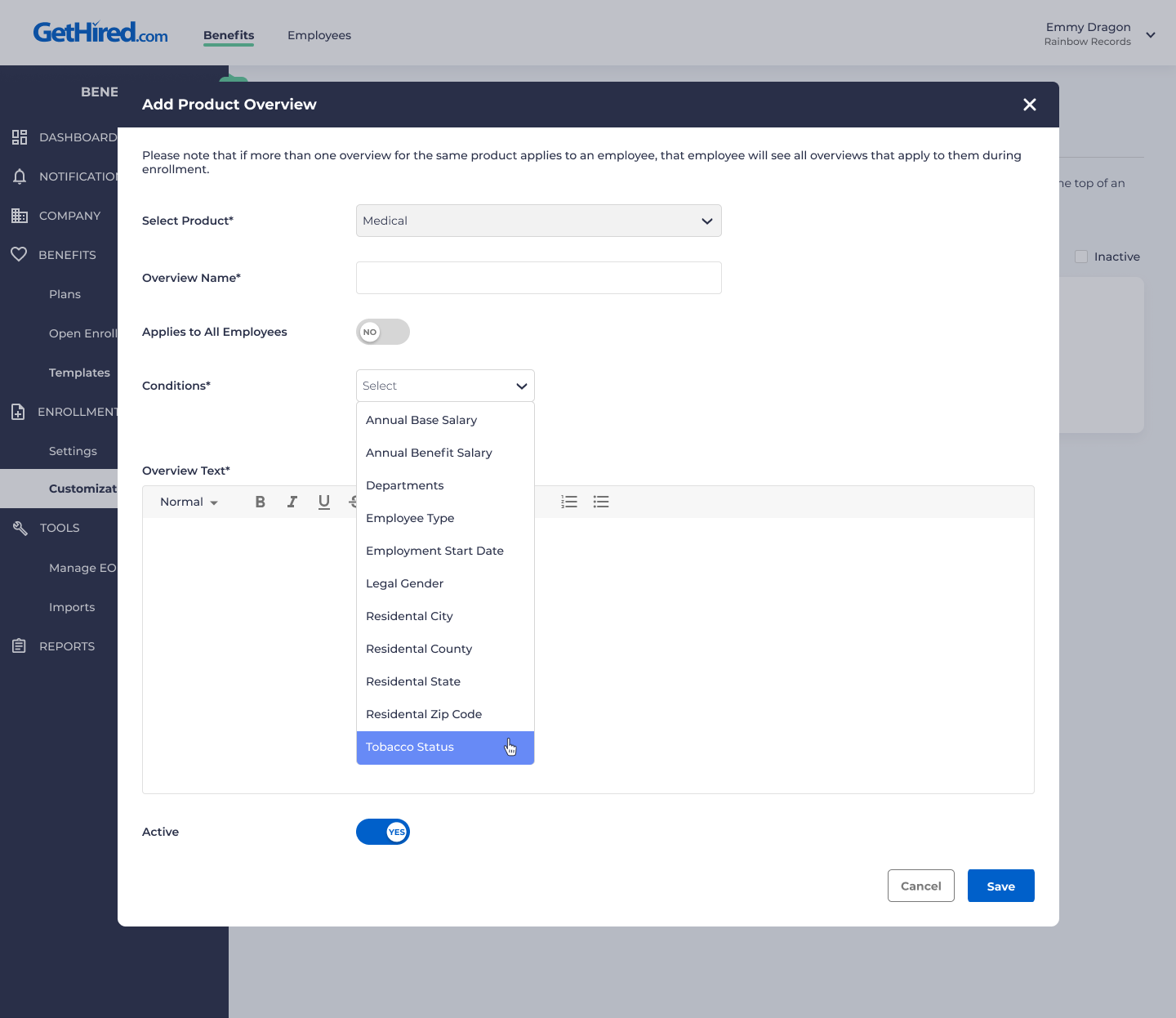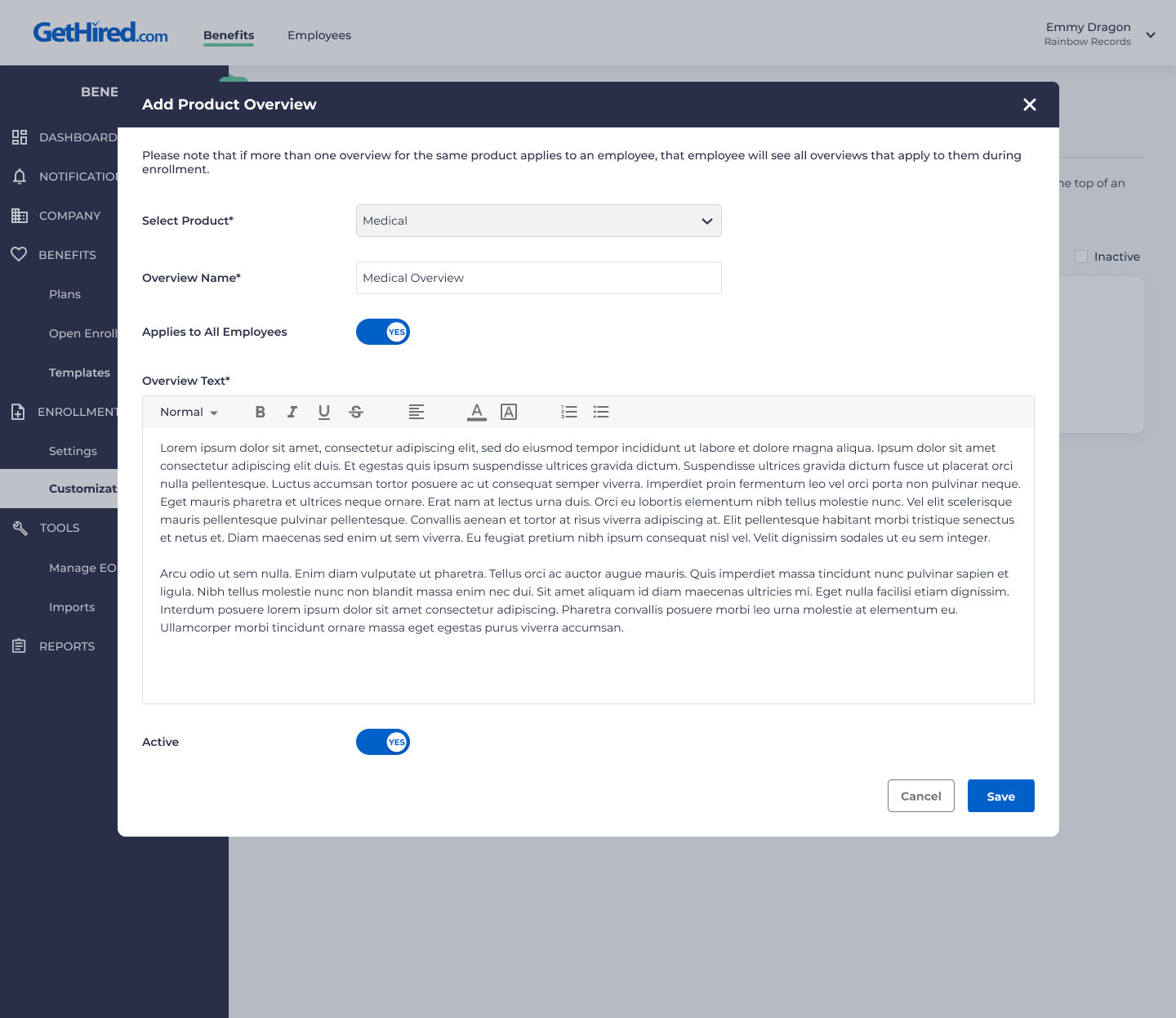 Sometimes you may need to create custom text which appears on the top of enrollment pages. These may be to provide a benefit overview for a particular product or any additional instructions that you need employees to see when enrolling.